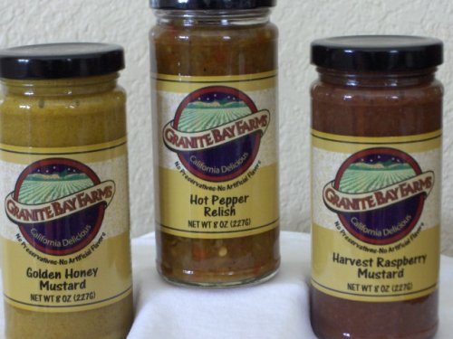 Hot Pepper Relish, Golden Honey Mustard and Harvest Raspberry Mustard, 3 Jar Sampler Reviews